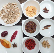 生姜(国産)、枸杞実、にんにく、花椒、ナツメ、ウンシュウミカン、ウコン(国産)、唐辛子(国産)、八角、シナモン、丁子